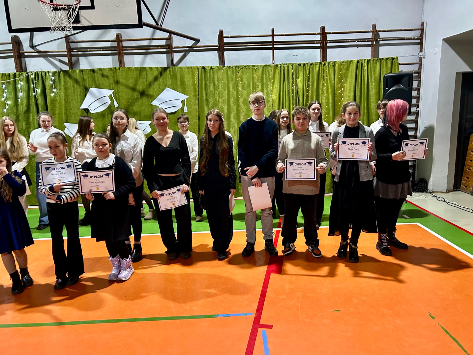 Podczas uroczystości nagrodzono najlepszych uczniów, wręczając im dyplomy. Nie zabrakło także gratulacji ze strony dyrekcji i nauczycieli, którzy podkreślali, jak ważna jest systematyczna praca i rozwijanie swoich pasji.