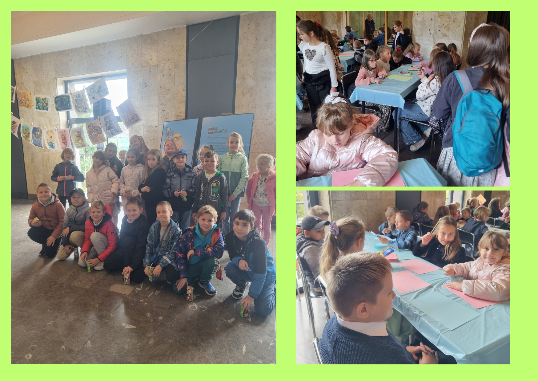 25 września uczniowie klas II i IIIwybrali się na wernisaż do DMiT. Mieli okazję przekonać się kim jest Eus Deus Kosmateus. Podziwiali wielobarwne i pełne ruchu szkice oraz wyjątkową animację. Dzieci dowiedziały się skąd ilustrator i arteterapeuta- Daniel Baranowski czerpał inspirację do pracy.
