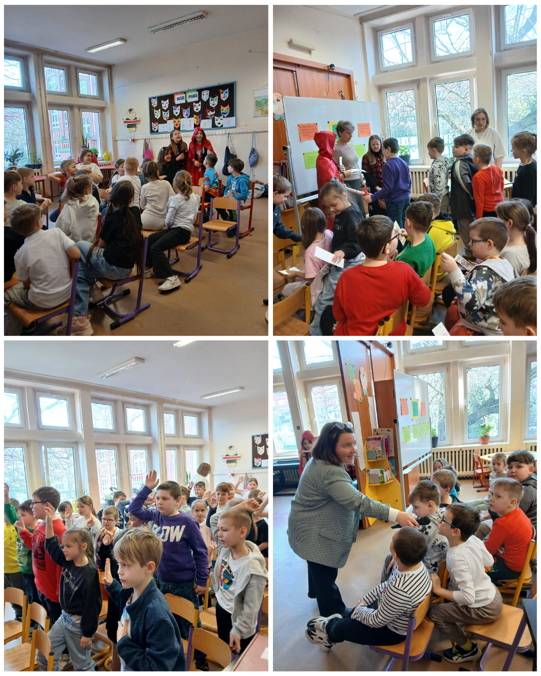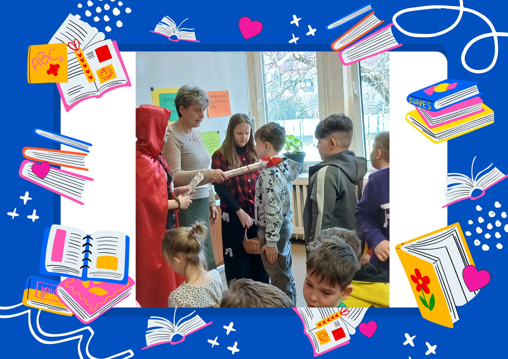 Uczniowie klas pierwszych zostali uroczyście pasowani przez p. wicedyrektor Darię Wrobel na czytelników biblioteki szkolnej. Wydarzenie miało wyjątkowy charakter, a jego oprawę artystyczną pod opieką p. Grażyny Postulki, zapewniła klasa 5b, prezentując inscenizację Czerwonego Kapturka. Uroczystość prowadzona przez p. Agnieszkę Kruk, podkreśliła znaczenie czytelnictwa w edukacji najmłodszych oraz zachęciła pierwszoklasistów do aktywnego korzystania z zasobów biblioteki.