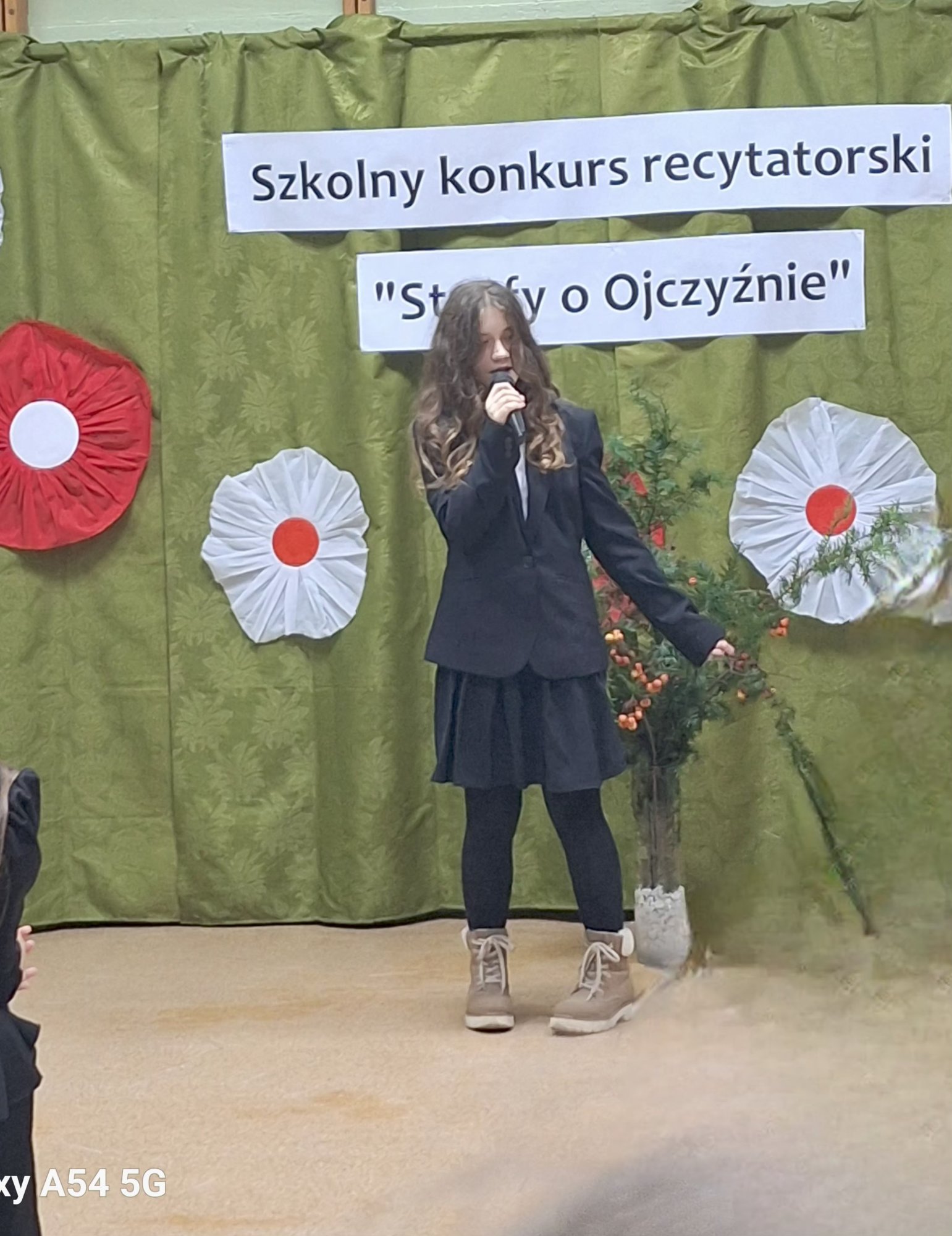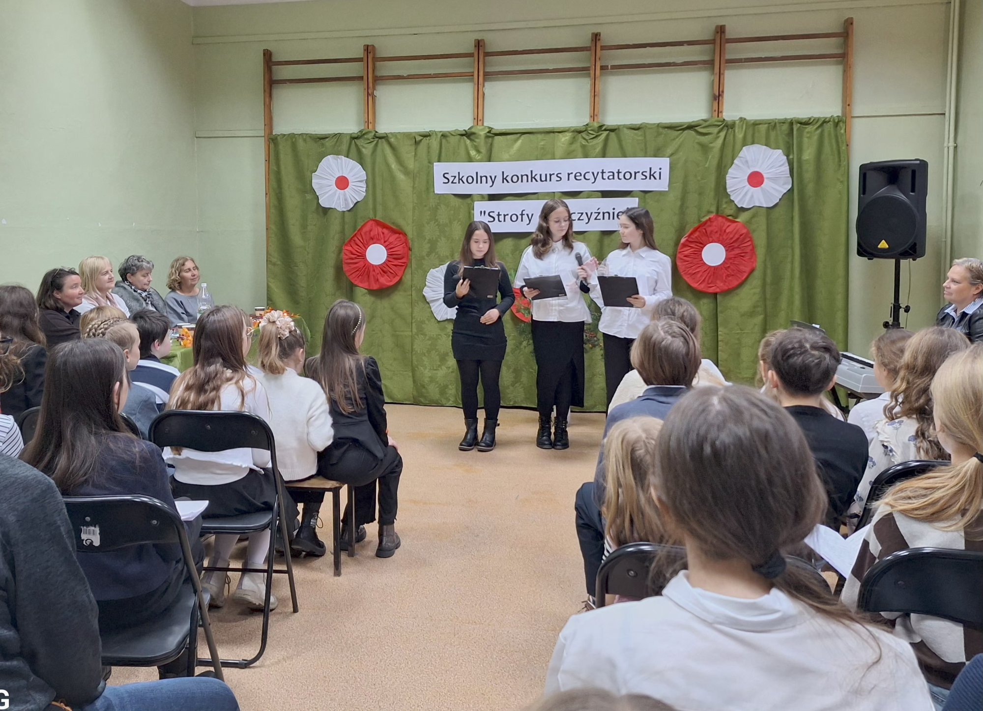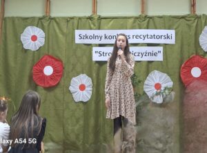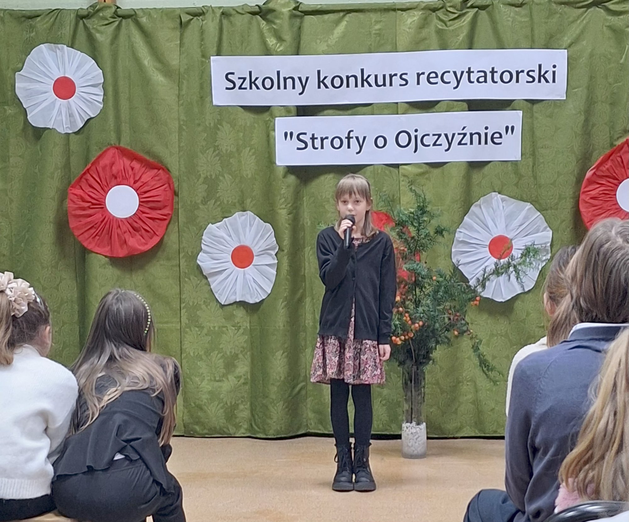 Zgodnie z mottem ,,Strofy o Ojczyźnie” celem konkursu była popularyzacja poezji patriotycznej poetów polskich oraz kształtowanie postaw patriotycznych i obywatelskich wśród uczniów. Oprawę muzyczną korespondującą z tematyką utworów przygotowała pani Sabina Borner.