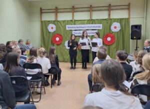 Spotkanie rozpoczął występ uczennicy klasy 8a Dominiki Rusynek. W jej wykonaniu zebrani wysłuchali dwóch lirycznych piosenek „Jest takie miejsce” i „Czarną sukienkę”. Miłą niespodzianką był również pozakonkursowy występ ubiegłorocznej zwyciężczyni Nefeli Sampalioti z klasy 8a, która przedstawiła Inwokację Adama Mickiewicza.