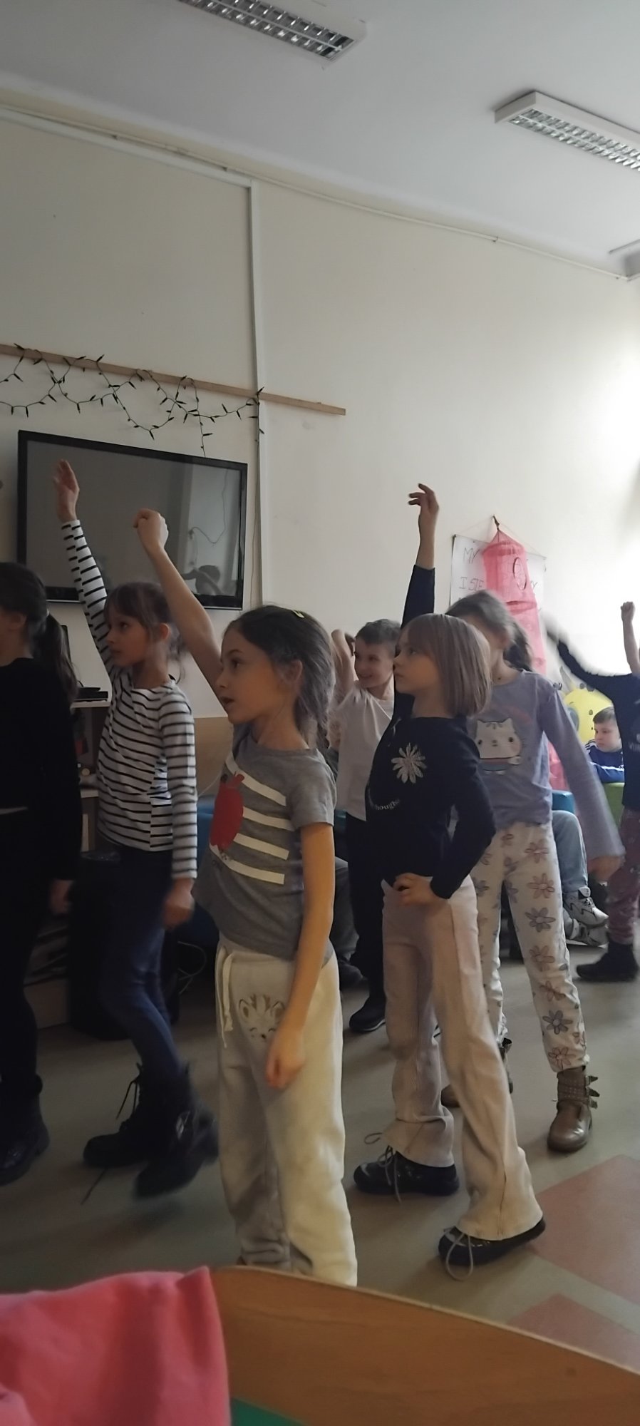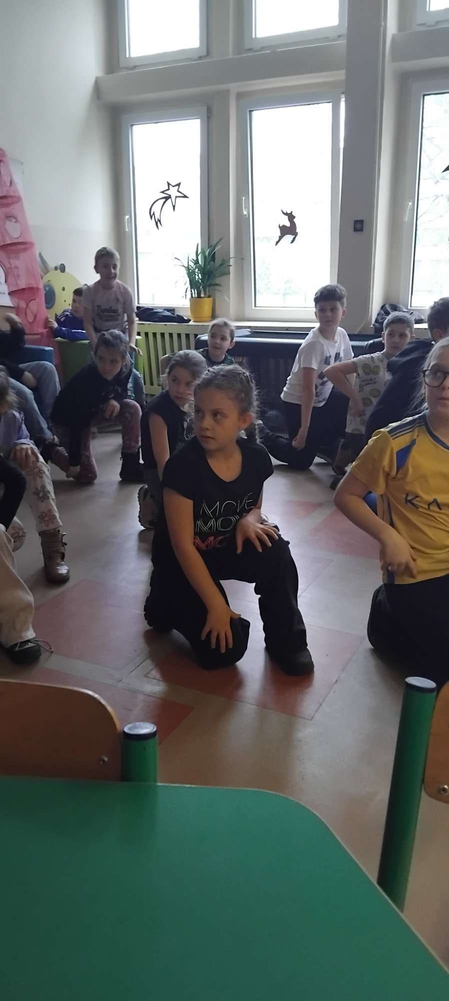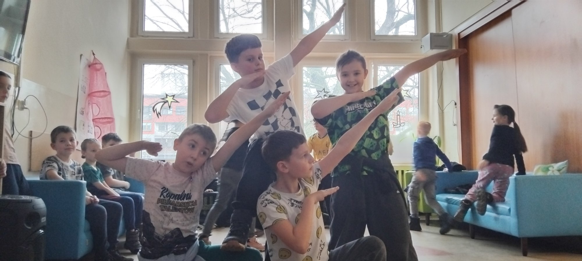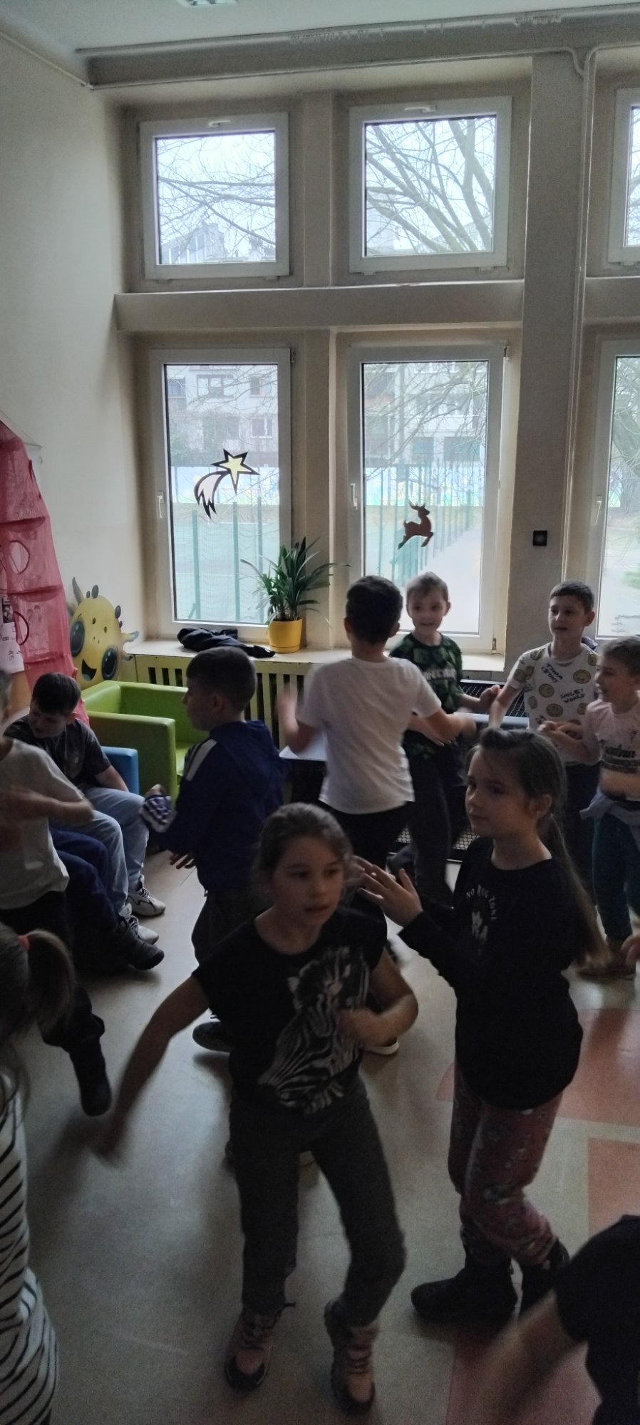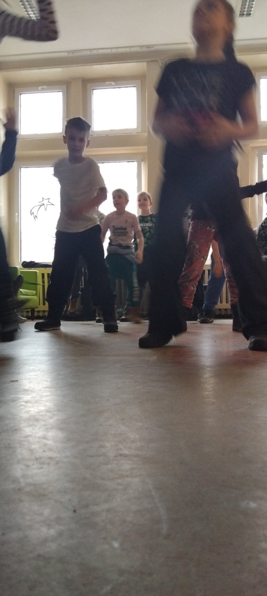 W naszej świetlicy odbyły się pełne energii i radości zajęcia taneczne. Uczniowie uczestniczyli w zabawach ruchowych przy muzyce, uczyli się prostych układów tanecznych oraz doskonalili koordynację ruchową i poczucie rytmu. Wspólna zabawa sprzyjała integracji grupy i aktywnemu spędzaniu czasu. Zajęcia dostarczyły dzieciom wielu pozytywnych emocji, a jednocześnie rozwijały ich kreatywność, sprawność fizyczną oraz umiejętność współpracy.
